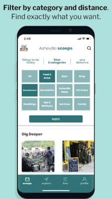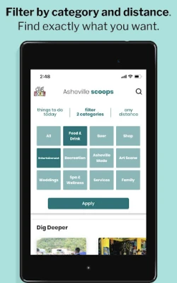 Dig Local is not only an app but a rallying cry to fight against the ever-growing number of chains, franchises and big box stores that make a city feel like Anywhere, USA. The Dig Local app connects you to what makes Asheville, NC the funky, delicious, artsy city that it is.