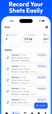 GLP1 Tracker simplifies the process of logging your weekly GLP-1 injections. Easily record the date, time, dosage, and injection site for each shot, ensuring accurate and organized tracking of your medication regimen. This feature helps you maintain consistency and provides a clear history of your treatment.