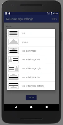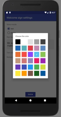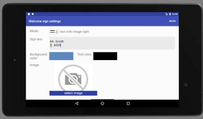 This app turns your tablet or phone into welcome sign (textboard / text banner / signboard) with big text or image. There is no need to print or write by hand paper sign with person name or text, just use this application.